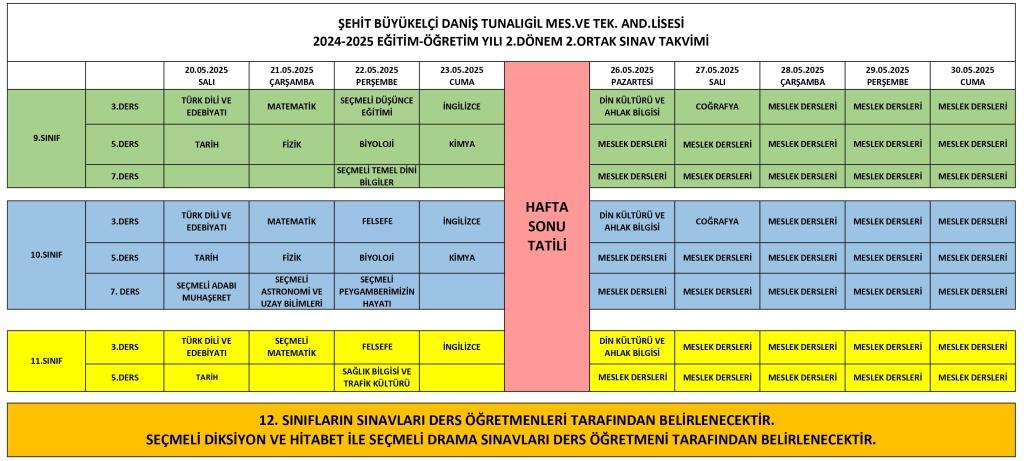2.Dönem 2.Ortak Sınav Takvimi Duyurusudur.